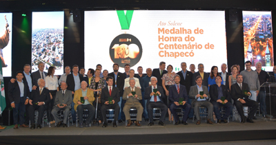 Os vereadores do Poder Legislativo de Chapecó estiveram, na tarde desta quarta-feira (11), participando da solenidade organizada pelo Poder Executivo, em homenagem aos ex-prefeitos municipais. Na oportunidade, os homenageados receberam a Medalha de Honra do Centenário de Chapecó.