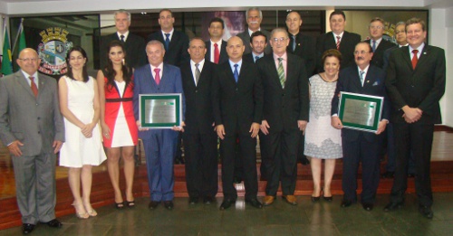 A Câmara de Vereadores realizou sexta-feira (13) Sessão Solene de concessão de título honoríficio a Genoino Antonio De Marco e Sextilio Hans. As proposições foram de Delvino Dall Rosa e Mario Tomasi, respectivamente, aprovadas por unanimidade. Presentes, amigos, familiares e diversas autoridades que prestigiaram o evento que reúniu dois grandes empresários aqui radicamentos há muitos anos.