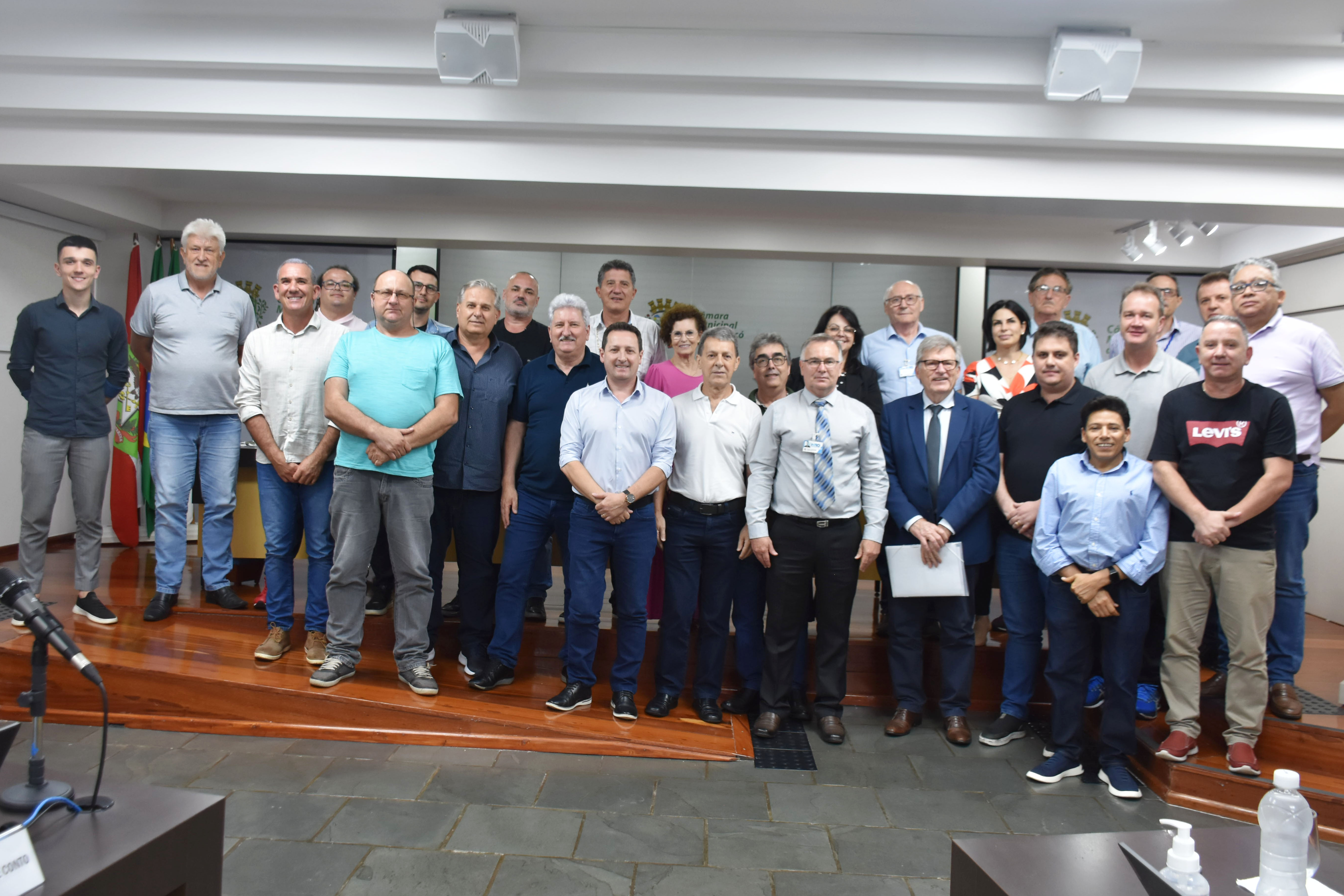 A Câmara de Vereadores de Chapecó, durante sessão ordinária desta segunda-feira (04), recebeu a visita de representantes da Associação Hospitalar Lenoir Vargas Ferreira, responsável pela administração do Hospital Regional do Oeste (HRO). O encontro foi proposto pelo vereador Claimar de Conto (PP), via requerimento aprovado. Participaram da sessão, o presidente da associação, Reinaldo Lopes; o presidente do Conselho de Administrativo, Ingo Rodrigues; o vice-presidente do Conselho Administrativo, Gelson DallaCosta e o diretor adjunto, Valmor Busanello.