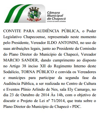 • CONVITE AUDIÊNCIA PÚBLICA - PLANO DIRETOR